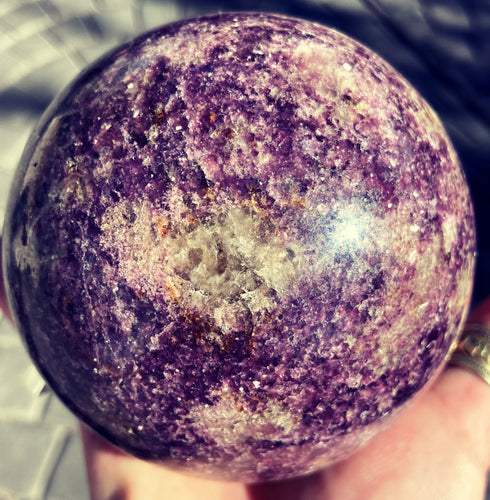 Lepidolite Sphere with Smoky Quartz Crystal Inclusions - Polished